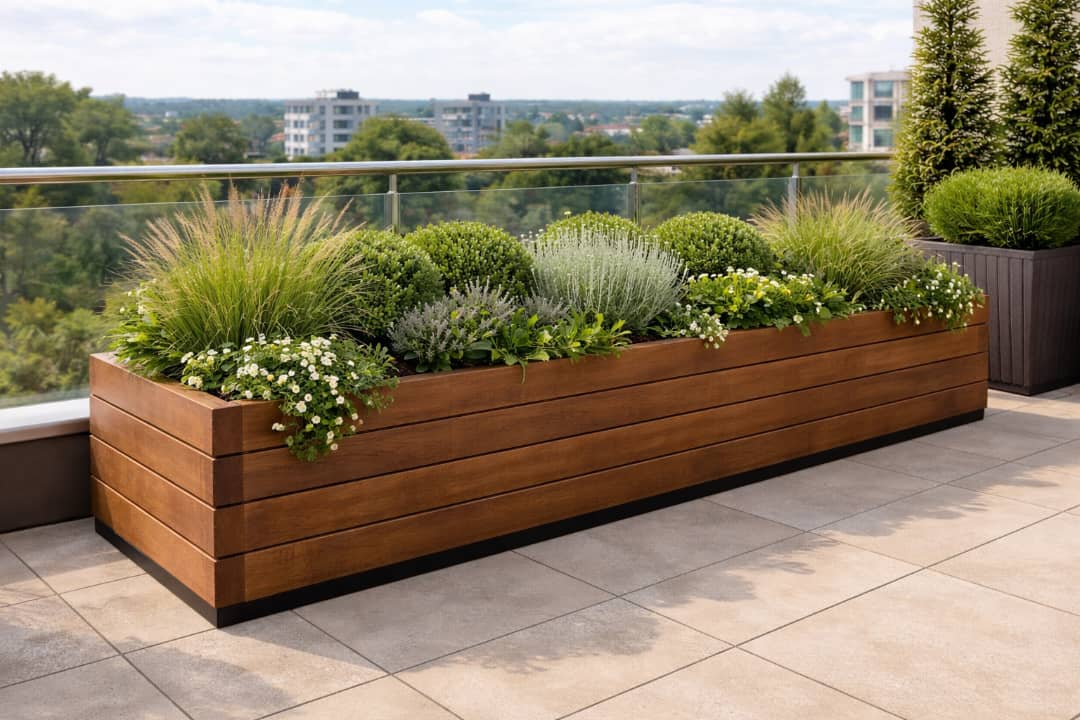 فلاورباکس ترموود گلدان مستطیلی اجرای روف گاردن مدل X200